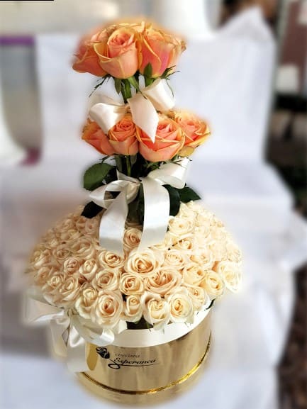 BOX OF FLOWERS-101 BEZ I KAJSIJA ruža u kutiji.