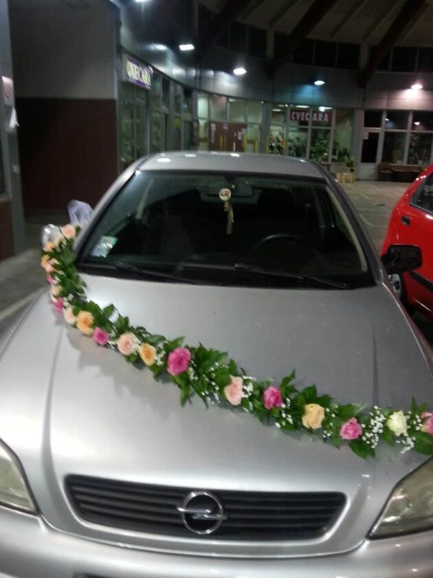 / Dekoracija automobila; venčić ruža, gipsofila – 18
