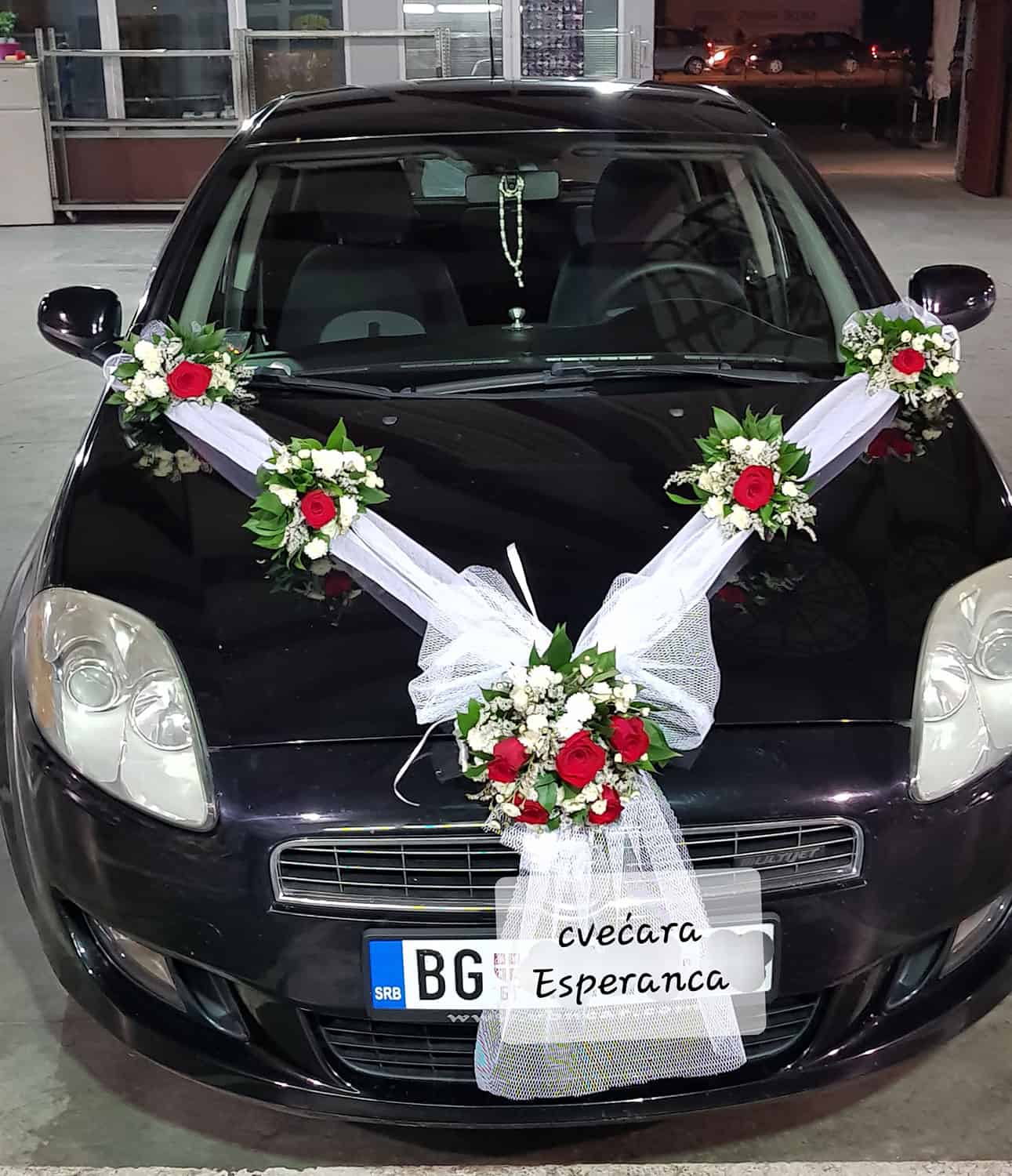/ Dekoracija mladenačkih kola sastoji se od pet buketa
